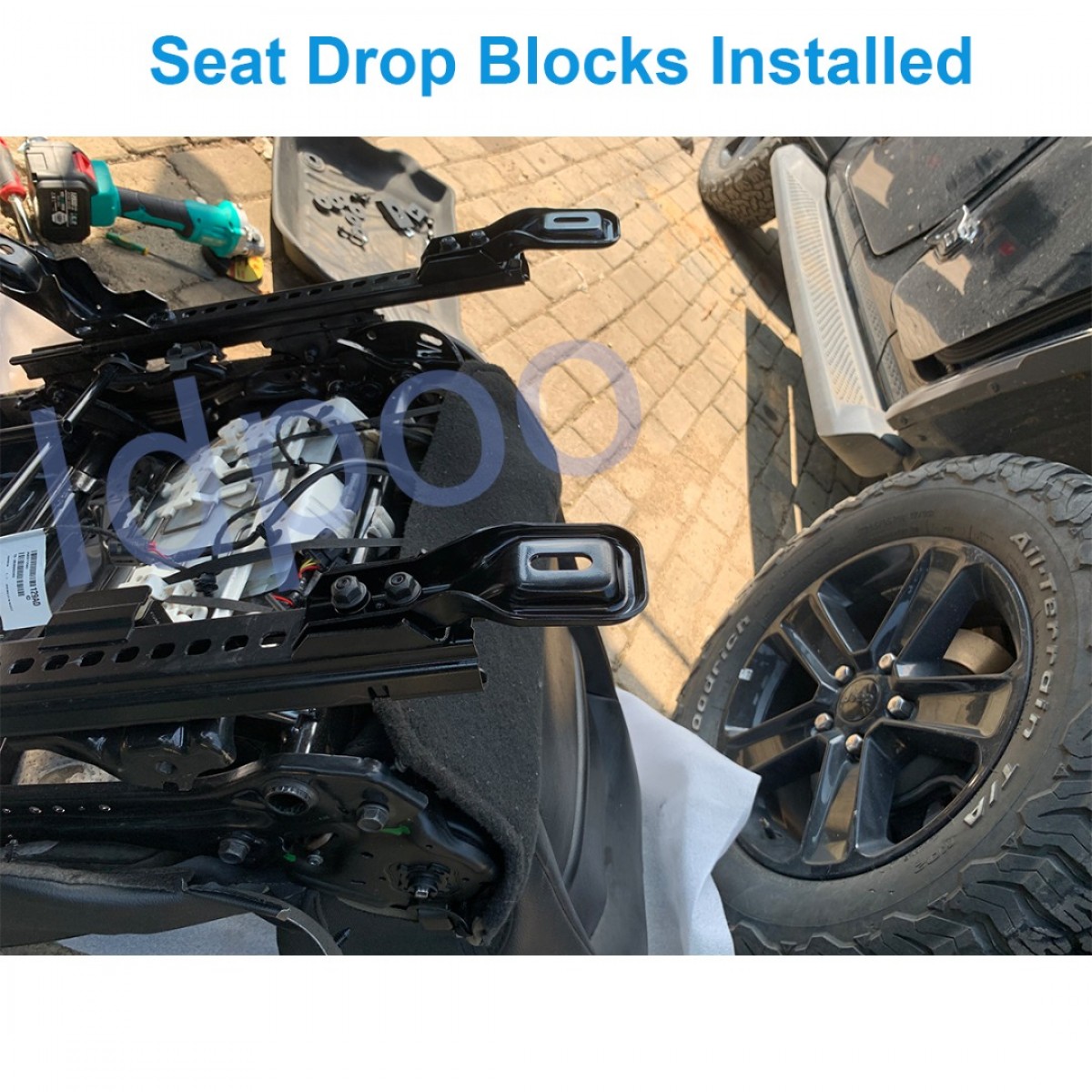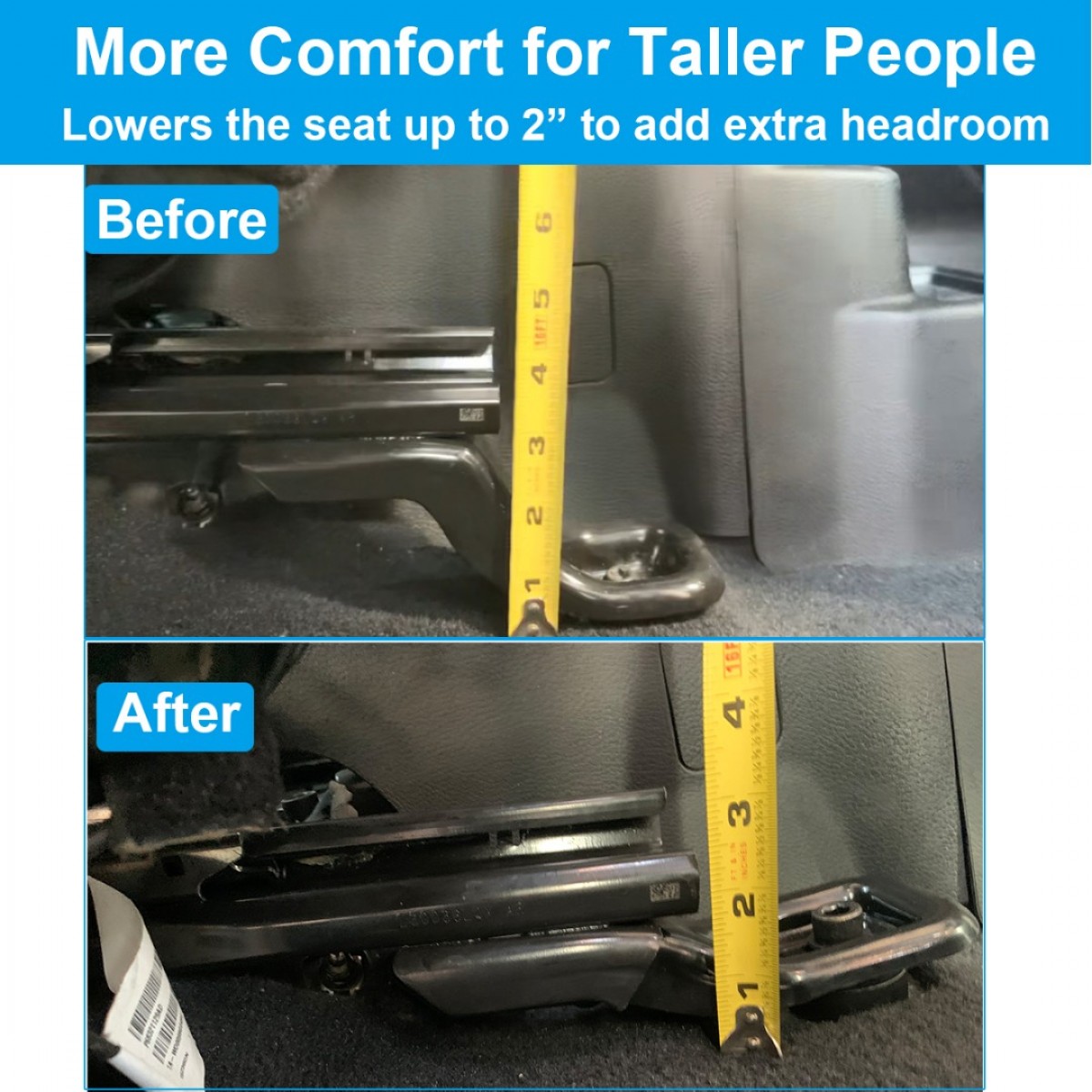 - [More Comfort for Taller People] Installs to the rear of the driver or passenger seat(Manual or Power Seats), Allows approximately 1"-2" of seat drop,Gives you more headroom and helps you avoid bumping you head on the frame.